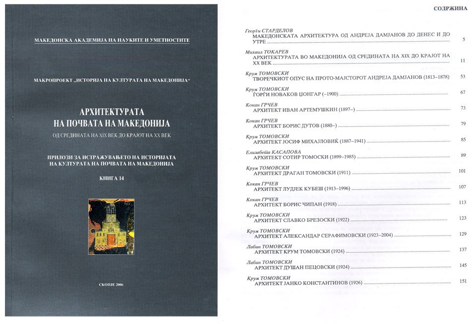 Архитектурата на почвата на Македонија од средината на XIX до крајот на XX век. МАНУ, Скопје, 2006, (стр. 11-53).