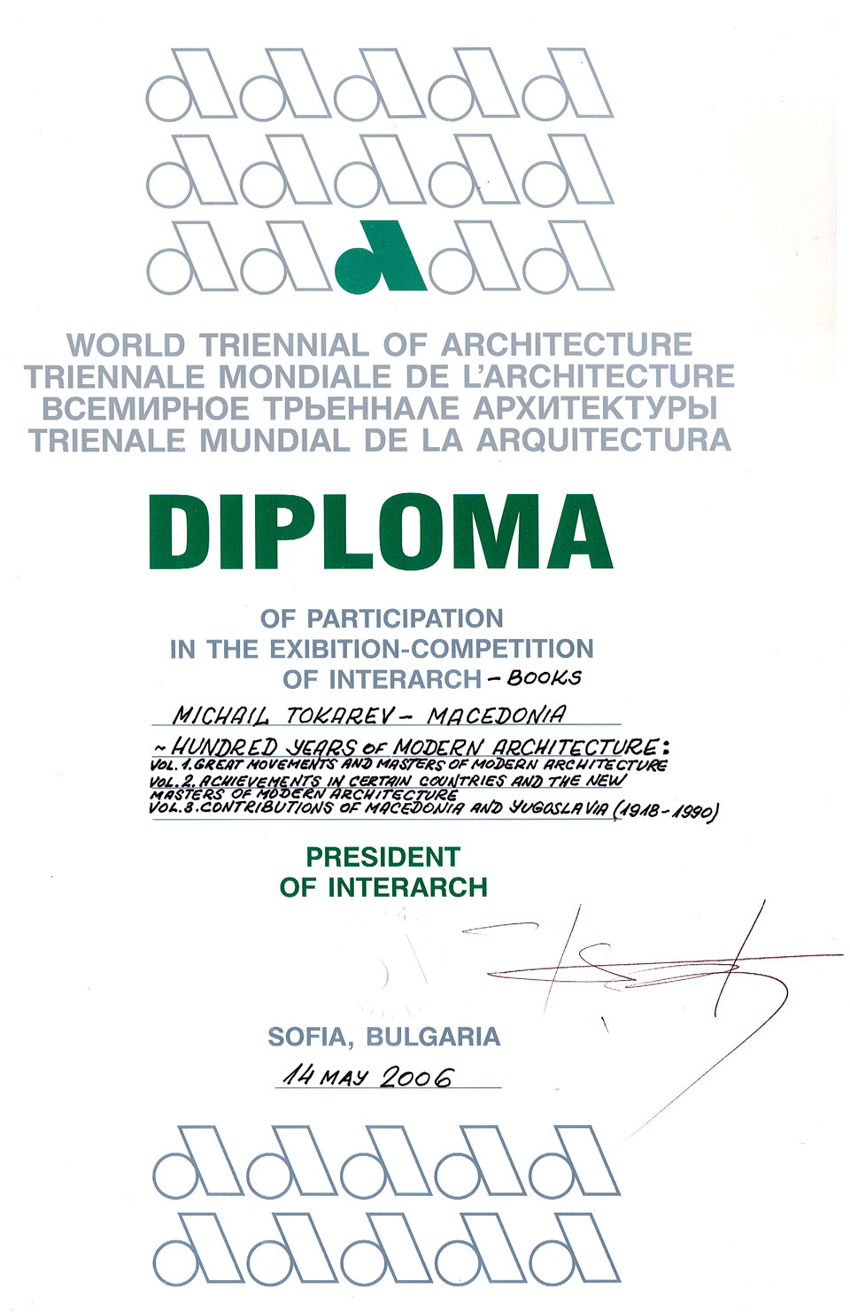 Архитект Трајко Димитров. Табернакул, 2004. Монографија, (со Славко Матевски), 200 стр.